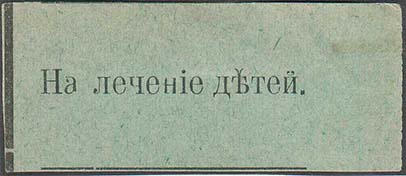 1915 1915(?) г. Разм. 70 х 20 мм. Одноцветная печать на бумаге различных цветов. Текст: «На лечение детей».