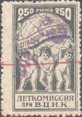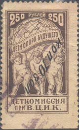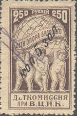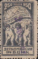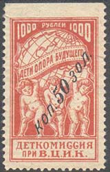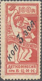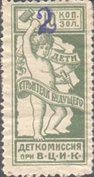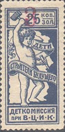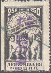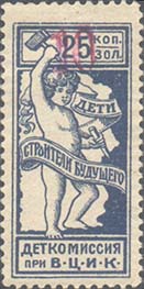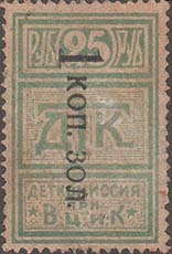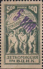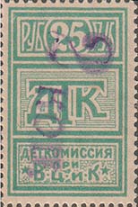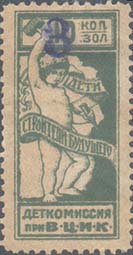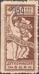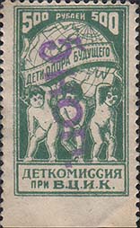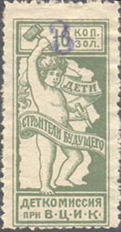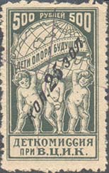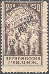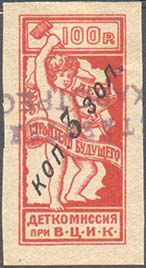 1924 1924(?) г. Надпечатки различных цветов нового номинала в виде цифр на марках второго всероссийского выпуска Деткомиссии при ВЦИК.