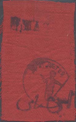 1924 1924(?) г. Разм. 40 х 67 мм. Одноцветная печать красной материи. В рамке сложной формы рисунок ребенка с флагом, на котором текст: «Друг детей». Сверху текст: «1 мая». Внизу текст на местном языке арабским шрифтом.