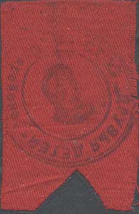 1924 1924(?) г. Разм. 33 х 52 мм. Одноцветная печать красной материи. Внизу вырез в виде фестона. В Центре оттиск печати общества.