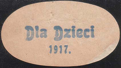 1917 1917 г. Виньетка в форме овала разм. 70 х 39 мм. Одноцветная печать на кремовой бумаге. В центре текст на польском языке: «Для Детей». Ниже дата: «1917».