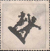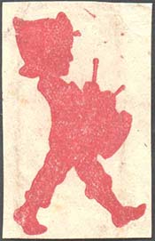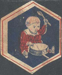 1924 1924(?) г. Разм. 28 х 45 мм. Одноцветная печать на белой бумаге. В центре силуэт мальчика с барабаном.