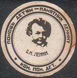 1925 1925(?) г. Круг диаметром 25,5 мм. Одноцветная печать на фотобумаге. В двойной круглой рамке диаметром 23 мм портрет Володи Ульянова трех лет. Под портретом подпись: «В.И.Ленин». Между рамками текст: «Помощь детям – памятник Ленину. Ком[итет]. пом[ощи]. дет[ям].».