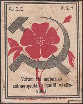 1928 1928 г. 25.05.1928 г. Разм. 48 х 60 мм. Двухцветная печать на плотной белой бумаге. В двойной прямоугольной рамке разм. 44 х 56,5 мм в центре цветок мака на фоне скрещенных серпа и молота. Сверху по углам аббревиатуры на азербайджанском языке латинским шрифтом. Внизу текст в три строки на азербайджанском языке латинским шрифтом. Внизу под рамкой выходные данные мелким шрифтом: «Лит. Треста «Бакполиграф» Главлит №2143 тир. 50000».
