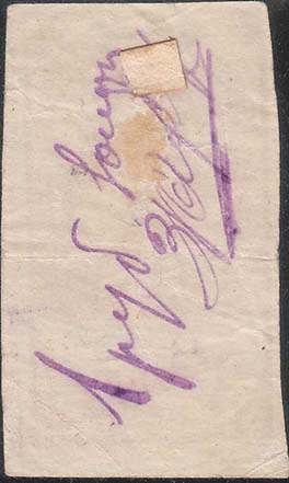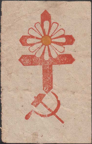 1925 1925(?) г. Разм. 47 х 74 мм. Двухцветная печать на серо-ватой бумаге низкого качества. В центре цветок ромашки на фоне шестиконечного креста. Внизу серп и молот.