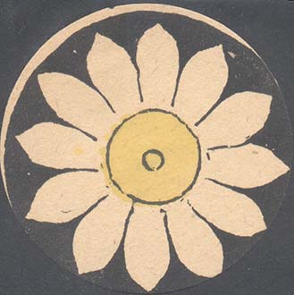 1917 1917(?) г. Круг диаметром 55 мм. Двухцветная печать на кремовой бумаге. В центре на сплошном фоне цветок ромашки.