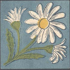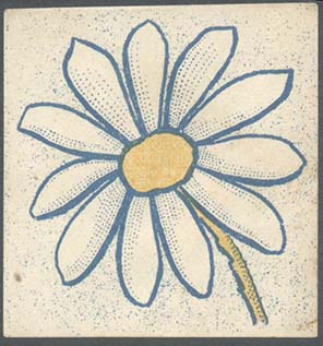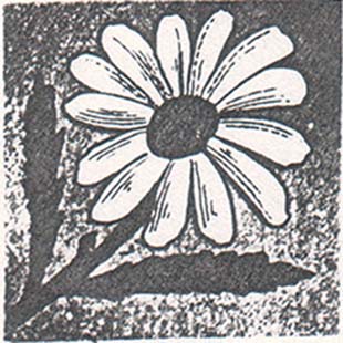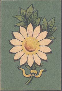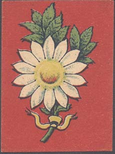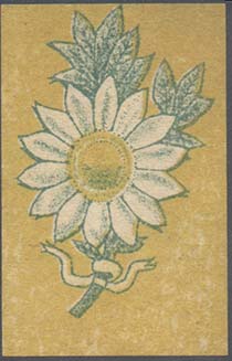 1917 1917 г. Разм. 36 х 53 мм. Двухцветная и многоцветная печать на белой бумаге. В центре на сплошном фоне цветок ромашки с двумя листьями и стеблем, перевитым внизу лентой.