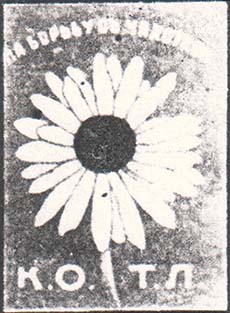 1915 1915(?) г. Разм. 34 х 47 мм. Двухцветная печать на плотной белой бумаге. В центре на сплошном фоне цветок ромашки. Сверху полукругом текст: «На борьбу с чахоткой». Внизу аббревиатура «К.О.Т.Л.».