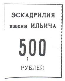 1923 1923 г. Одноцветная печать на белой бумаге. Нерегулярная зубц. Номинал и текст в две строки: «Эскадрилья имени Ильича».
