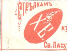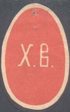 1915 1915(?) г. Виньетка в форме яйца разм. 23 х 36 мм. Одноцветная печать на желтоватой бумаге. В центре яйцо, в центре которого буквы «Х» и «В».
