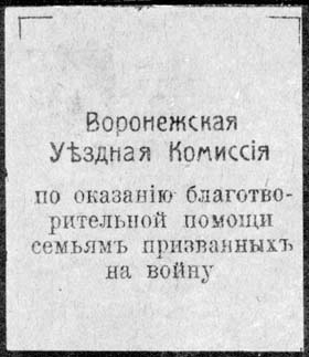 Организация-эмитент: ВОРОНЕЖСКАЯ УЕЗДНАЯ КОМИССИЯ ПО ОКАЗАНИЮ БЛАГОТВОРИТЕЛЬНОЙ ПОМОЩИ СЕМЬЯМ ПРИЗВАННЫХ НА ВОЙНУ