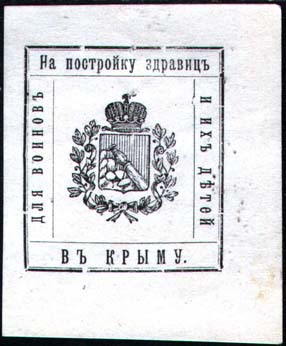 1915 1915 г. Всероссийский сбор. Разм. 48 х 56 мм. Одноцветная печать на белой бумаге. В двойной прямоугольной рамке разм. 33,5 х 38 мм в центре герб г. Воронежа. По периметру между рамками текст: «На постройку здравниц в Крыму для воинов и их детей».