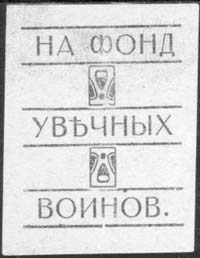 1915 1915(?) г. Разм. 35 х 42 мм. Одноцветная печать на бумаге различных цветов. В центре текст в три строки: «На фонд увечных воинов». Между строками текста декоративные элементы.