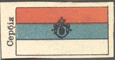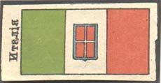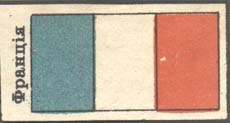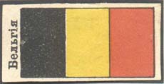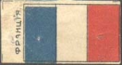 1915 1915(?) г. Разм. 29 х 16 мм. Виньетки в виде флагов стран-союзниц России в Первой мировой войне. Трехцветная печать на тонкой белой бумаге. Слева вертикально снизу вверх название страны.