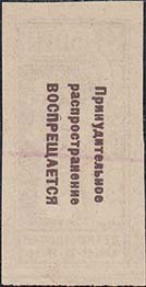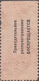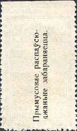 1924 1924 г. Третий республиканский выпуск. Разм. рамки 23 х 36,5 мм. Одноцветная печать на белой (оттенки) бумаге. Зубц. 11 1/2. С клеем. Рисунок предыдущего выпуска. На оборотной стороне текст на белорусском языке в две строки: «Принудительное распространение воспрещается».