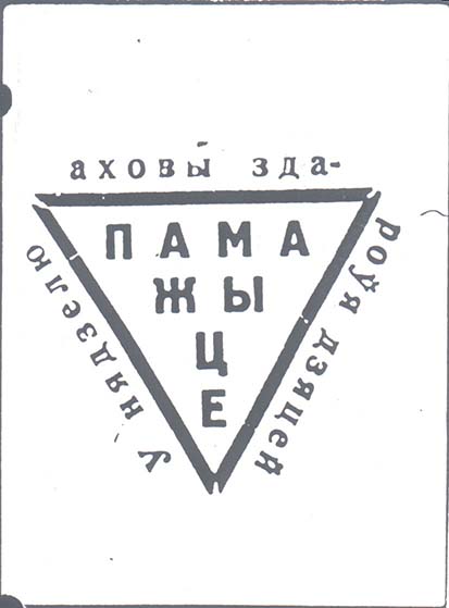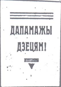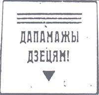 1930 1930(?) г. Разм. 70 х 94 мм. Одноцветная печать на белой бумаге. В центре в рамке в форме перевернутого треугольника разм 55 х 48 мм текст на бело-русском языке в четыре строки: «Помогите». По периметру рамки на белорусском языке текст: «В неделю охраны здоровья детей».