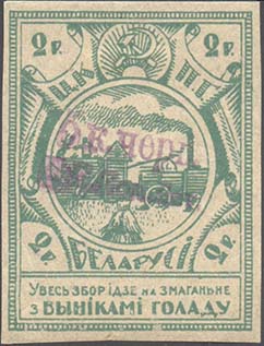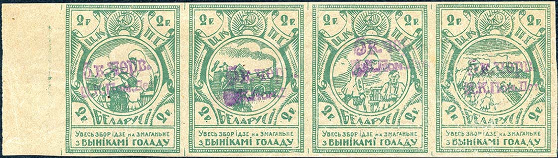 1924 1924 г. Фиолетовая надпечатка нового номинала в виде: «5 к. черв. Ц.К. Пом. Дет.» на марках выпуска ЦКПГ Белоруссии.