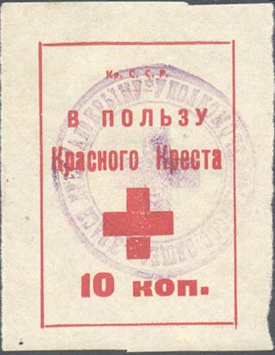 1928 1928 г. Разм. рамки 36 х 54 мм. Одноцветная печать на белой бумаге. С клеем. В прямоугольной рамке в центре красный крест. Сверху текст в три строки: «Кр.С.С.Р. В пользу Красного Креста». Внизу номинал.