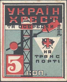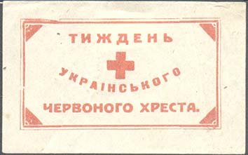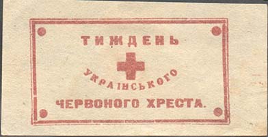 1925 1925(?) г. Разм. рамки 48,5 х 26 мм. Одноцветная печать на белой бумаге. В центре красный крест. Текст на украинском языке в три строки: «Неделя Украинского Красного Креста».