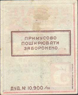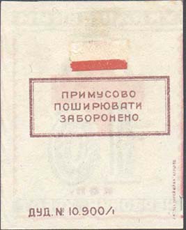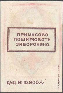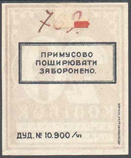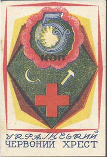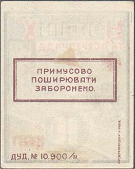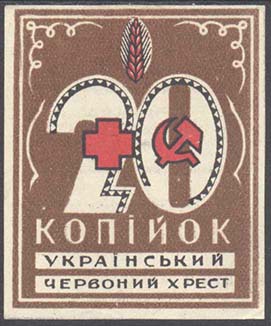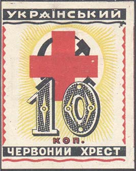 1931 1931 г. Трехцветная и многоцветная двухсторонняя печать на белой бумаге. На лицевой стороне различные рисунки и текст на украинском языке: «Украинский Красный Крест». На оборотной стороне в центре в двойной рамке текст в три строки на украинском языке: «Принудительное распространение запрещено». Внизу выходные данные. Справа мелким шрифтом выходные данные: «Лит. «Красный путь» Харьков».