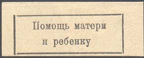 1931 1931 г. 10.-17.09.1931 г. Разм. 49 х 18 мм. Одноцветная печать на желтоватой бумаге. В центре в прямоугольной рамке 37 х 13 мм текст в две строки: «Помощь матери и ребенку».