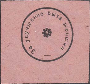 1933 1933 г. 08.03.1933 г. Разм. 40 х 33 мм. Одноцветная печать на желтоватой (?) бумаге. В центре в круглой рамке диаметром 25 мм орнамент в виде цветка. По внутреннему периметру рамки текст: «За улучшение быта женщин».