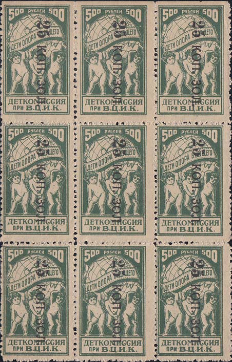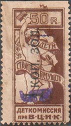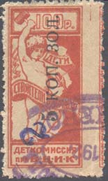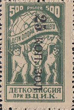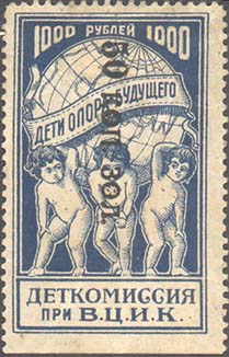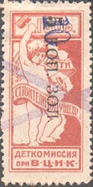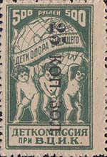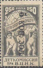 1924 1924 г. Второй вспомогательный выпуск. Черная типографская надпечатки нового номинала на марках первого всесоюзного выпуска Деткомиссии при ВЦИК.