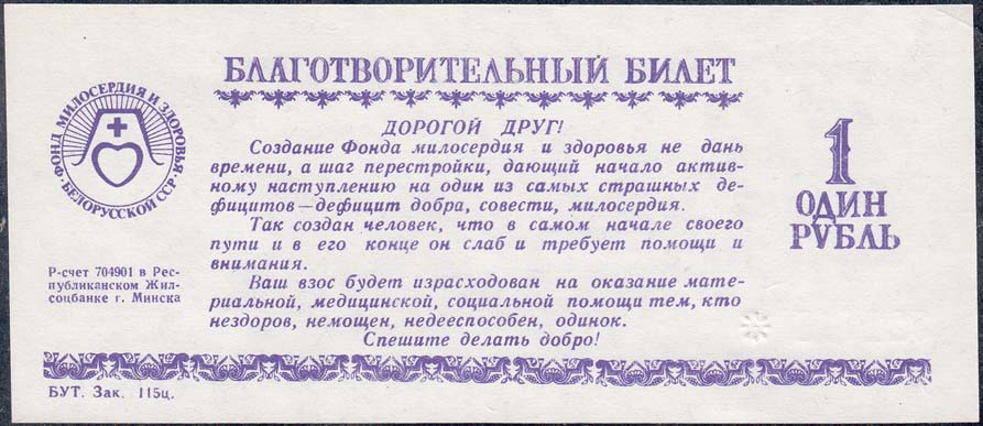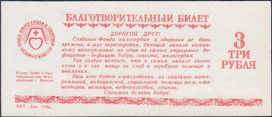 Организация-эмитент: ФОНД МИЛОСЕРДИЯ И ЗДОРОВЬЯ БЕЛОРУССКОЙ СССР