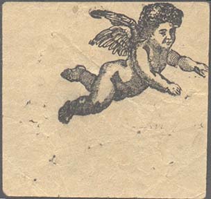 1915 1915(?) г. Разм. 51 х 48 мм. Одноцветная печать на желто-серой бумаге. В центре изображение ангела.