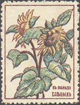 1913 1913(?) г. Разм. рамки 25 х 34 мм. Трехцветная печать на белой бумаге. Зубц. 11 1/2. В центре в прямоугольной рамке два растения подсолнечника. Внизу справа текст в две строки: «В пользу слепых».