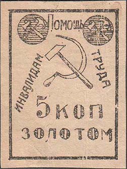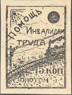 1924 1924 г. Разм. рамки 35 х 48 мм. Одноцветная печать на желтоватой бумаге. Различные сюжеты. Текст: «Помощь инвалидам труда». Номинал в золотой валюте.