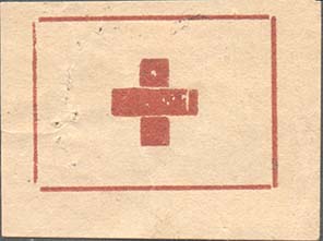 1928 1928(?) г. Разм. 49 х 37 мм. Одноцветная печать на желто-ватой бумаге. В центре в прямоугольной рамке разм. 38 х 27 мм красный крест.